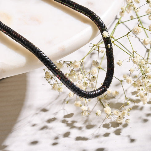 The Serpentine | Rainbow Eclipse Hematite x Gunmetal | Double Wave Necklace is made from: