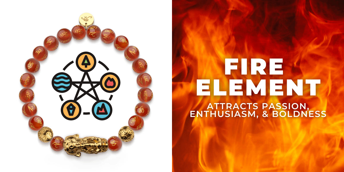 In Chinese Philosophy, the five elements of Feng Shui are Water, Fire, Wood (Carbon), Earth, and Metal. Each person has an element based on the year they were born. Each element is represented by a color and is believed that when you wear represent element color, your energy and well-being are strengthened.