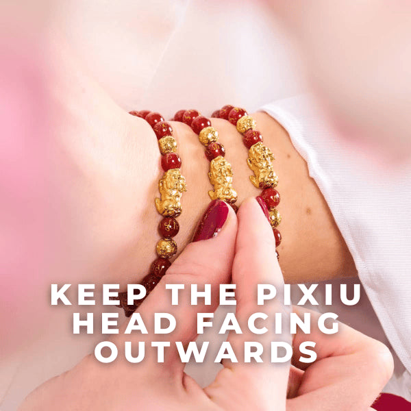 When wearing the bracelet, ensure that the Pixiu’s head is facing outwards, allowing the Pixiu to hunt for wealth and bring that wealth to you.