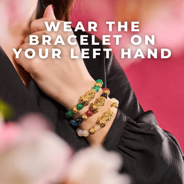 Wear the Pixiu bracelet on your left hand to attract good fortune for yourself. If you choose to give away good fortune to others, wear the Pixiu bracelet on your right hand.