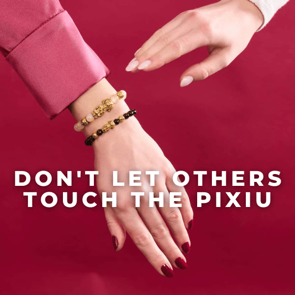 Avoid someone touching your Pixiu Bracelet, but don’t freak out if it happens. You need to rinse the Pixiu bracelet with water. Always touch the Pixiu while wearing it to connect with it and let it know that you are its owner!