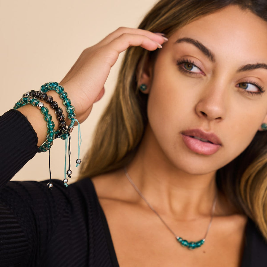 Forged in stunning .925 Sterling Silver Or 316 Hypoallergenic Polished Stainless our Firefly Glass™ necklaces are designed to glow from across the room.