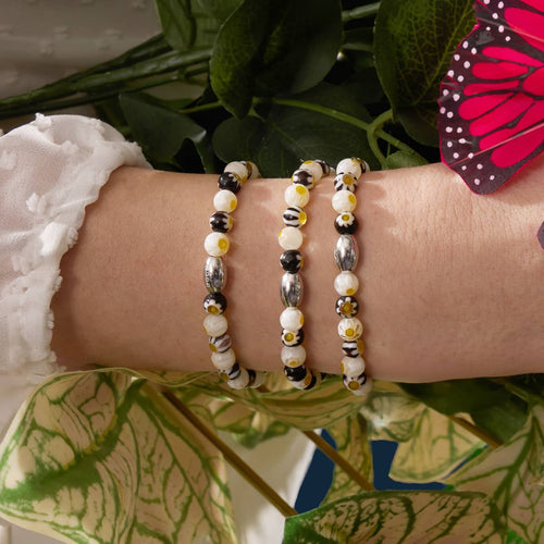 Ivory | Silver | Firefly Glass Clover Bracelet £67.00£35.00